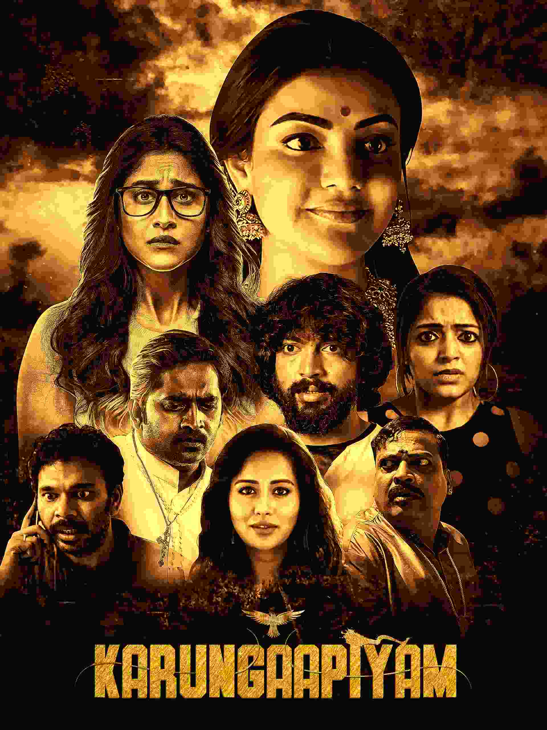 | Story : Karungaapiyam is a comedic horror thriller movie that tells the story of how people's lives were planned out and everything about the future was written down in the distant past. When Kajal Aggarwal was brutally kicked out of her village by throwing stones at her head, she died and turned into a ghost that imposed vengeance on subsequent generations of villagers. |
